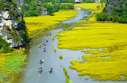 - Ninh Binh – Tam Coc : Croisière paisible sur les rivières, falaises karstiques et pagodes pittoresques entourées de nature luxuriante.