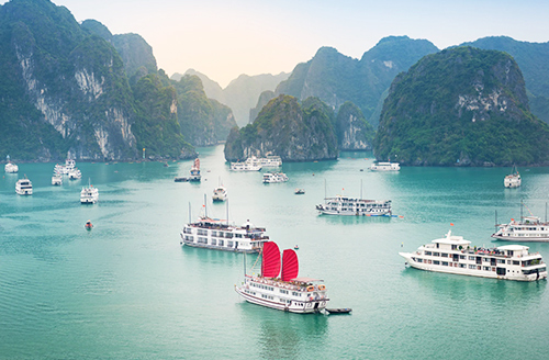 Après le petit-déjeuner, départ à 8h00 en direction du port de Tuan Chau, porte d’entrée de la mythique baie d’Halong, classée au patrimoine mondial de l’UNESCO depuis 1994. En route, un arrêt café vous permettra de vous détendre avant de poursuivre à travers les paysages fertiles du delta du Fleuve Rouge.