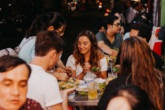 Dès 18h, le célèbre marché de Ben Thanh se métamorphose en un véritable carnaval culinaire en plein cœur du district 1. Les ruelles autour du marché central deviennent un marché de nuit à Hô Chi Minh animé, où les stands débordent de mets typiques vietnamiens comme le bánh xèo (crêpe croustillante farcie), le phở (soupe emblématique) ou encore le cơm tấm (riz brisé). Attention, les prix peuvent être 20 à 30 % plus élevés que ceux pratiqués en journée, il est donc conseillé de bien négocier. Pour ceux qui recherchent des choses à faire la nuit à Hô Chi Minh-Ville, flâner ici est un incontournable. Ne manquez pas de goûter au chè sầu riêng (dessert au durian) ou au bánh tráng trộn, stars de la street food nocturne. L’ambiance est chaleureuse, entre senteurs de grillades et musique populaire, idéale pour une immersion gourmande et festive.
