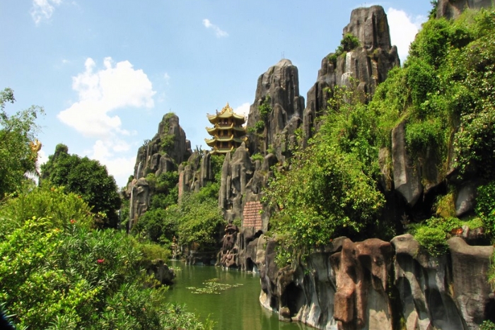 Situées à quelques kilomètres du centre-ville, les montagnes de Marbre, composées de cinq collines de calcaire et de marbre, sont un site incontournable à découvrir lors d’un séjour à Da Nang Vietnam en novembre. Chaque colline représente un élément (métal, bois, eau, feu, terre) et abrite des grottes, des pagodes et des sanctuaires bouddhistes. La grotte Huyền Không, avec ses autels et ses rayons de lumière naturelle, est particulièrement captivante. Depuis le sommet, admirez une vue panoramique sur la ville et la côte. Prévoir 2 à 3 heures pour explorer ce site, mais attention aux escaliers glissants par temps humide. Le prix d’entrée est d’environ 40 000 VND par personne.