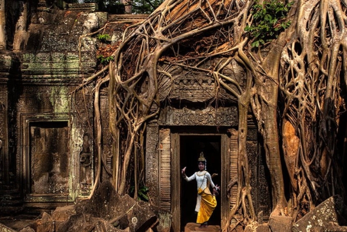 temple de Ta Prohm, enserré par les racines des fromagers géants, m’a plongée dans un décor de film.