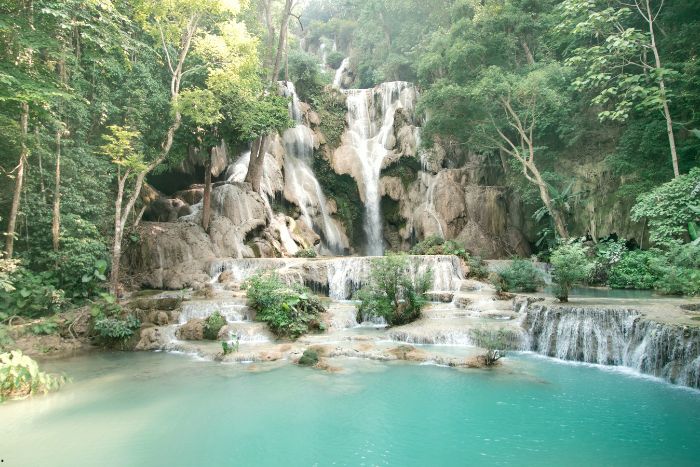 De plus, la ville abrite les cascades de Kuang Si, considérée comme la plus belle du Laos. Vous pourrez non seulement admirer les grandes et petites cascades se déversant dans des eaux cristallines, mais aussi vous baigner dans des bassins d'eau pure et profiter d'une expérience de massage par les poissons en nageant ici.